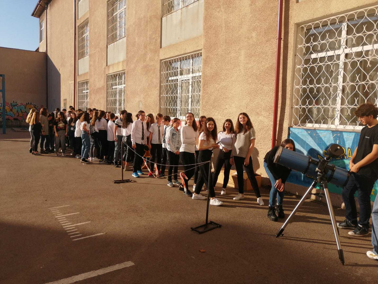 Astroclubul “Spre Stele” al Liceului Teoretic OVIDIUS Constanța a organizat pe data de 11 noiembrie 2019  o activitate observațională de amploare cu privire la un eveniment astronomic rar. Tranzitul planetei Mercur prin fața discului solar a fost urmărit de elevi interesați de astronomie, atât din liceu cât și din alte școli locale, părinți și profesori. Văzut doar parțial din Romania, fenomenul a putut fi urmărit de la orele 14:35 până la apusul soarelui. Dispunând de echipamente adecvate și specifice observațiilor vizuale la Soare, care fac parte din dotarea laboratorului de astronomie, s-au realizat observații vizuale și fotografii pentru expoziție de fotografie tematică. În mod special și pentru prima data în seria de activități propuse de astroclub, s-a realizat și o transmisie live prin streaming pe un canal youtube destinat activităților astroclubului. Astfel, transmisia a putut fi vizualizată de întregul mapamond, fenomenul fiind mediatizat pe pagina astroclubului: sprestele.ro, pe facebook în contul specific facebook.com/ConstantaLiceulTeoreticOVIDIUS/, pe alte rețele de socializare și pe youtube.